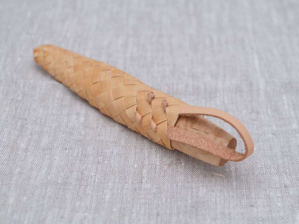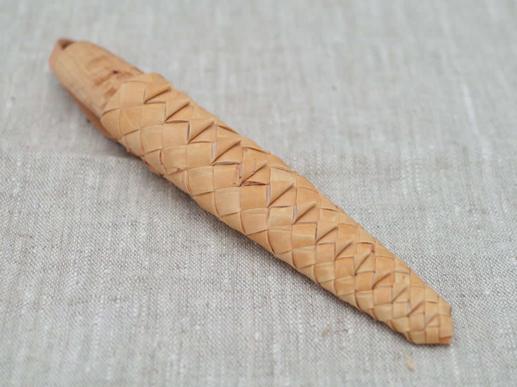 Carving puukko with 70 mm carbonsteel blade. Oiled curly birch handle and birch bark sheath with wooden liner inside. Overall length of puukko aprox. 180 mm.